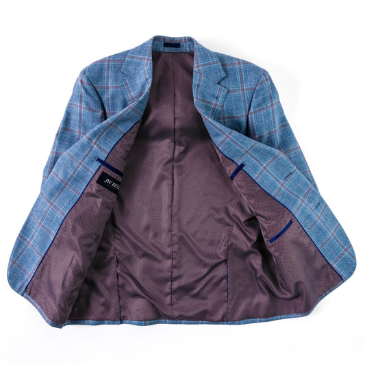 Blue Pink Windowpane Wool, Silk & Linen Sport Coat