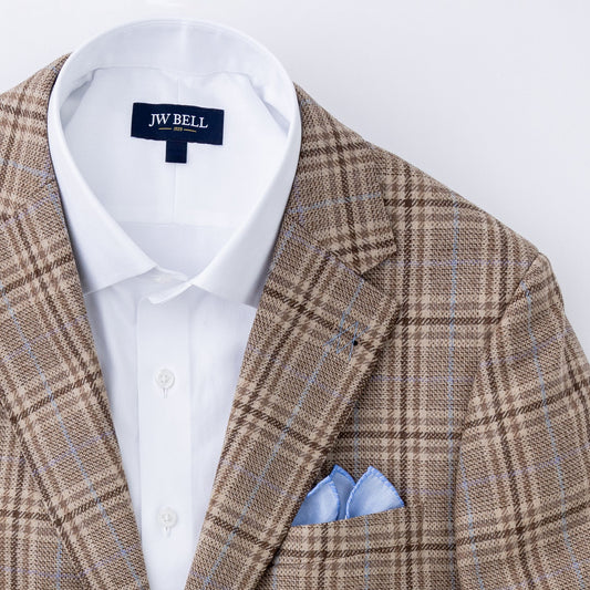 Clay Light Blue Windowpane Wool, Silk & Linen Sport Coat